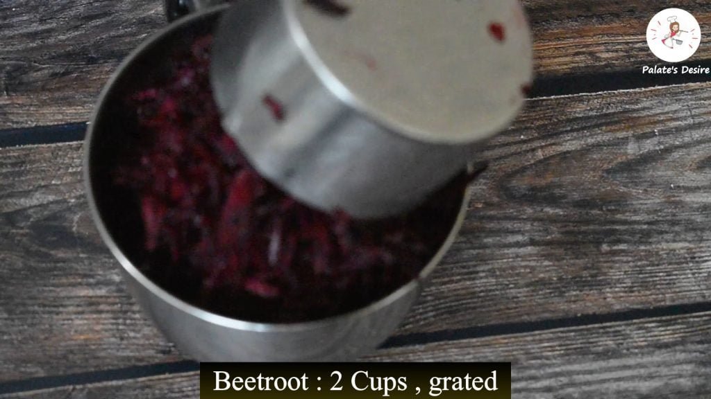- Grate approximately around 2 cups of beetroot and keep aside.