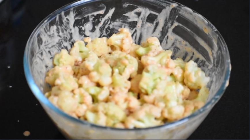 - Fry the batter coated cauliflower florets in hot oil in 2- 3 batches , depending on size of your pan.