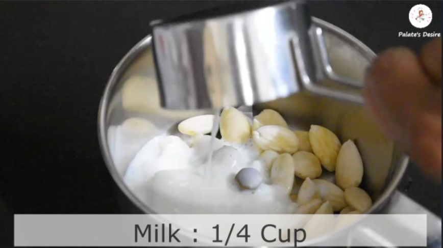 - Peel almond skin and transfer it into a mixer jar / blender.