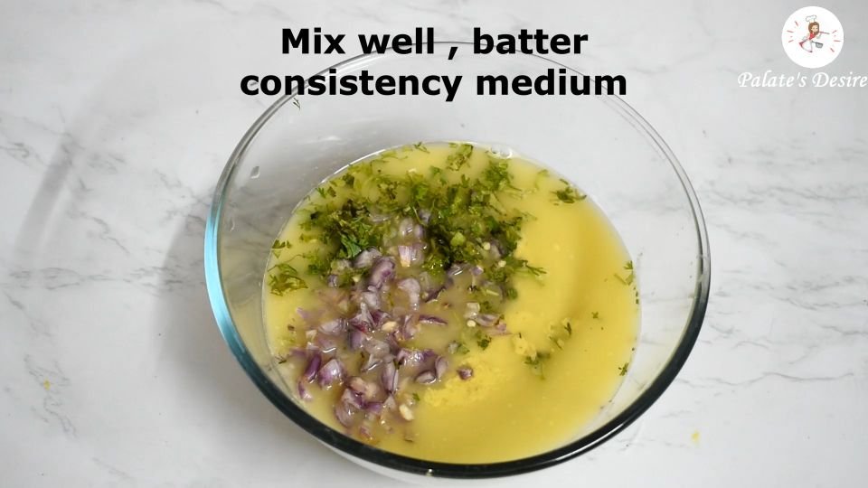 - Transfer to a bowl , add chopped onions and coriander leaves, Mix well together.