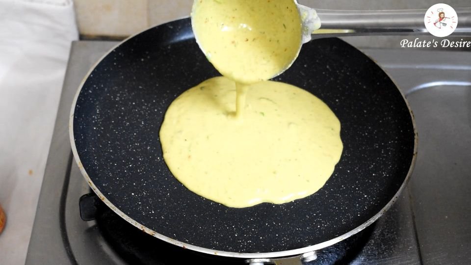 - Heat tawa/ pan/ griddle , spread ladle full of batter on tawa .