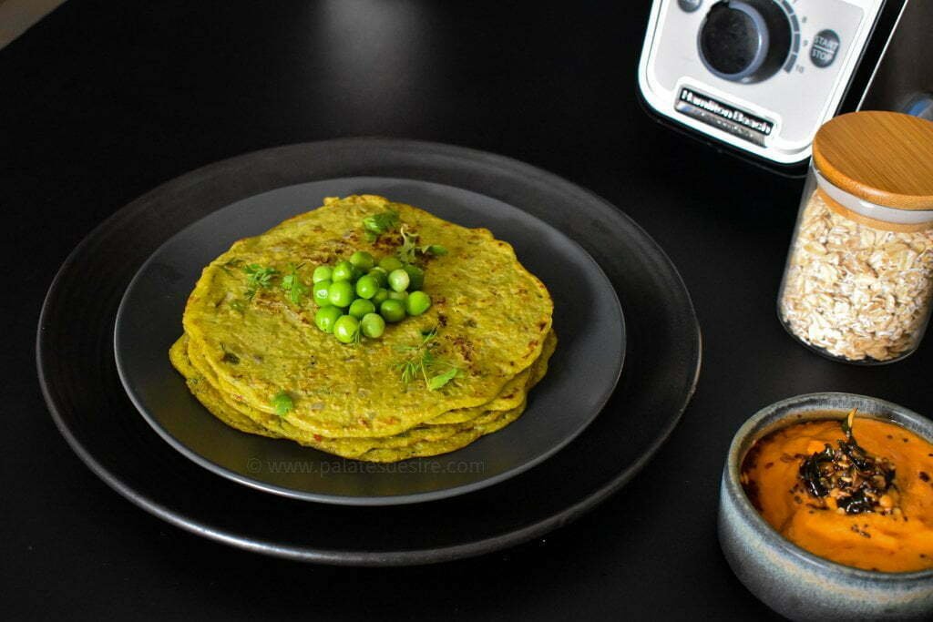 Oats Pancake or oats GreenPeas chilla recipe with step by step photos and video. Oats savory pancakes are quick , easy and tasty protein packed breakfast recipe made with rolled oats , green peas, herbs and spices.