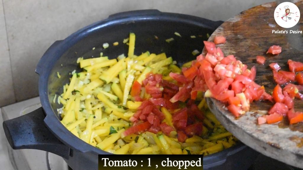 - Add in chopped tomatoes, mix well and continue to saute for 1-2 minutes.