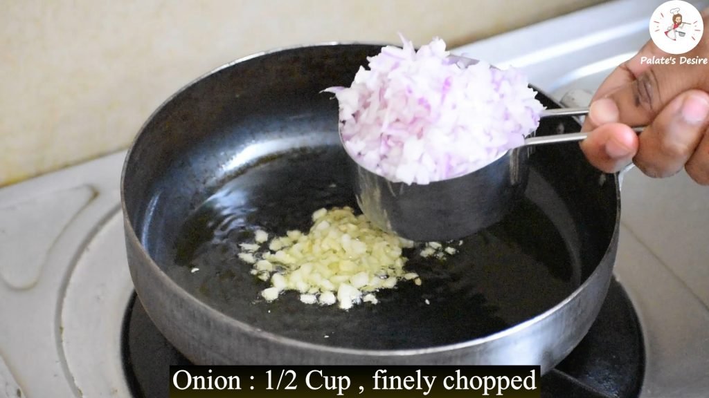 - Add chopped garlic and onion , fry till onions turns translucent.