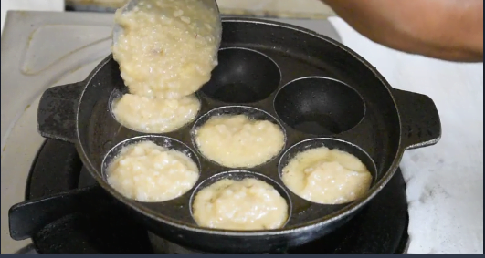 Heat appe pan , add ½ teaspoon of Ghee / clarified butter into every chamber.