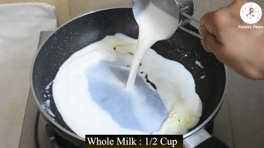 - Now add milk powder gradually, part by part stirring continuously. Make sure that there are no lumps of milk powder.