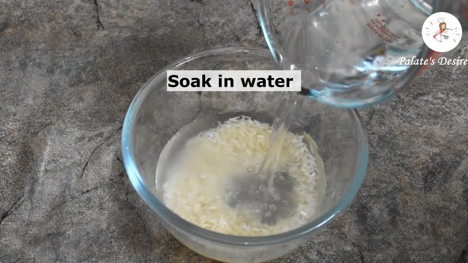 Drain water completely and spread rice on a kitchen towel to dry. You can also pat rice grains with kitchen towel to wipe it dry.