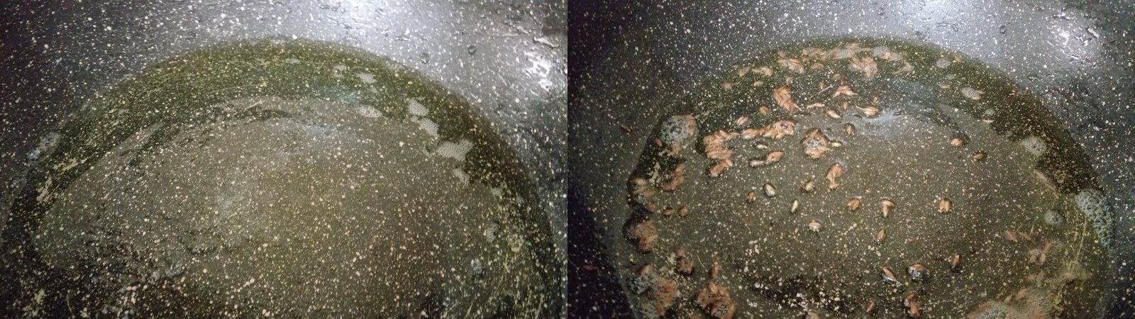 - In a Kadai / Pan , heat 2 tablespoon of oil , add 1 teaspoon of jeera /cumin seeds and allow it to crackle.